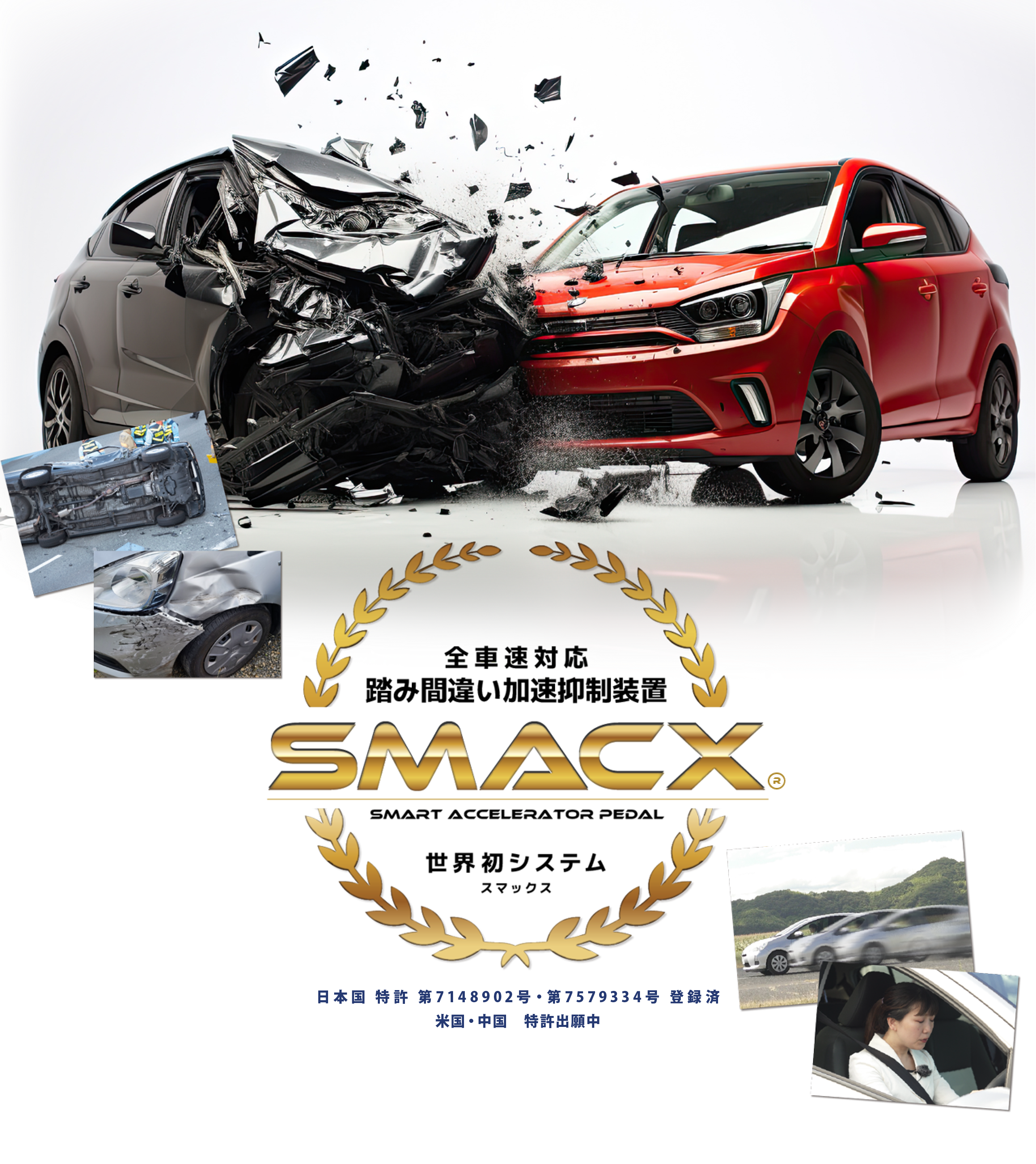弊社では、独自に実験し新たな発見から、運転者の踏み込み力値感知による全車速に対応した、「ペダル踏み間違い加速抑制装置 SMACX®」を実現させました。